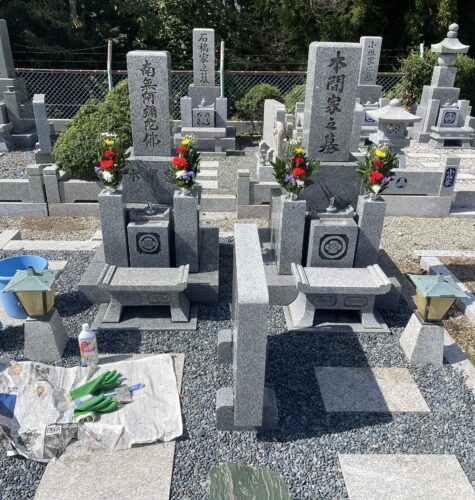 年に4回、正月と春秋の彼岸、お盆にお墓の清掃と草抜き入れ花をさせていただいてます 費用はお墓の大きさ花の数によって違いますので、連絡いただければ見積もりさせていただきます