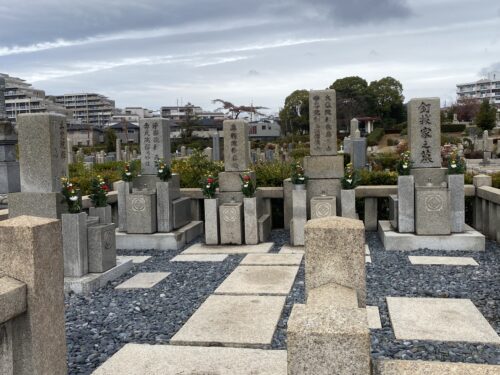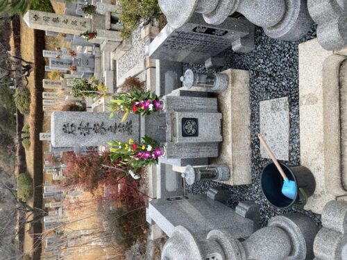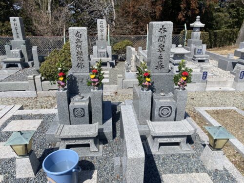 春の彼岸お客様に頼まれて服部霊園北摂霊園でお墓の清掃草抜きをして入れ花をしてきました